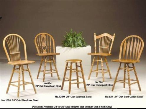 Solid Oak Bar Stools ...all 5 styles available in 24" seat heights and with medium oak finish.