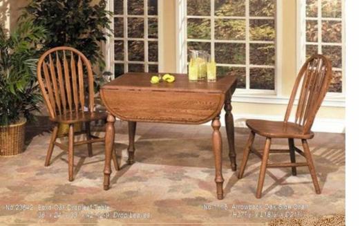 Solid Oak Drop leaf Table, Solid Oak Bow back Chairs......other styles ,shapes, and sizes available in this collection. We are stocking this in both medium and dark oak.